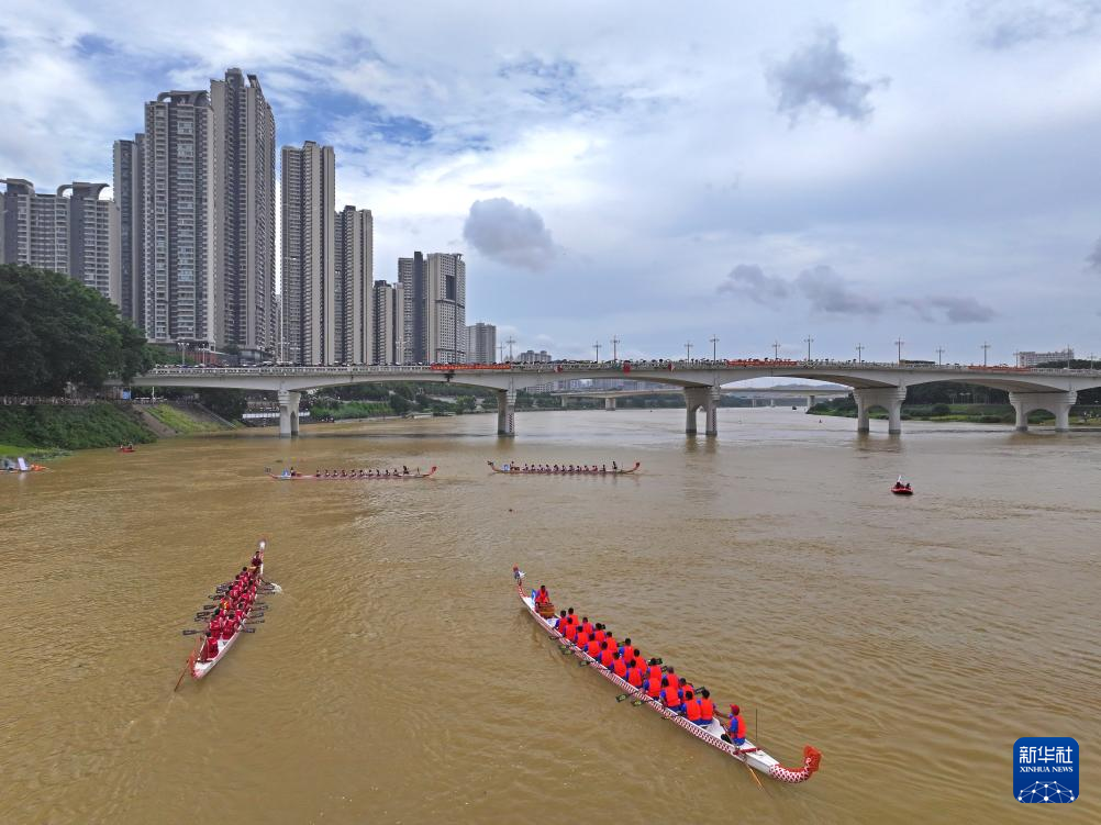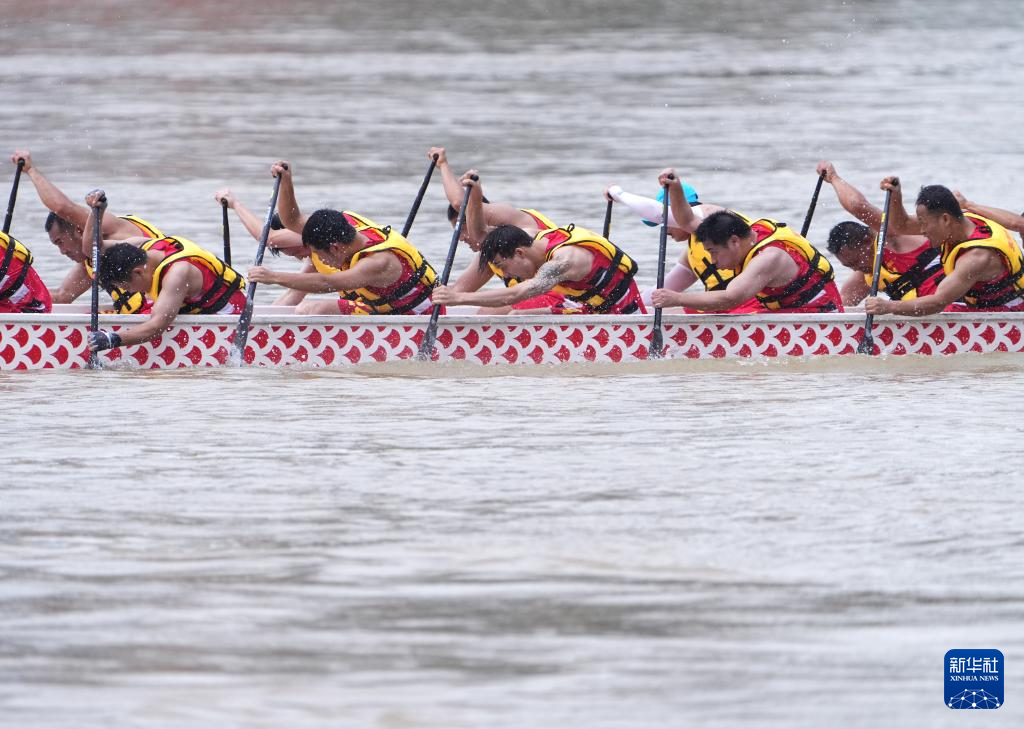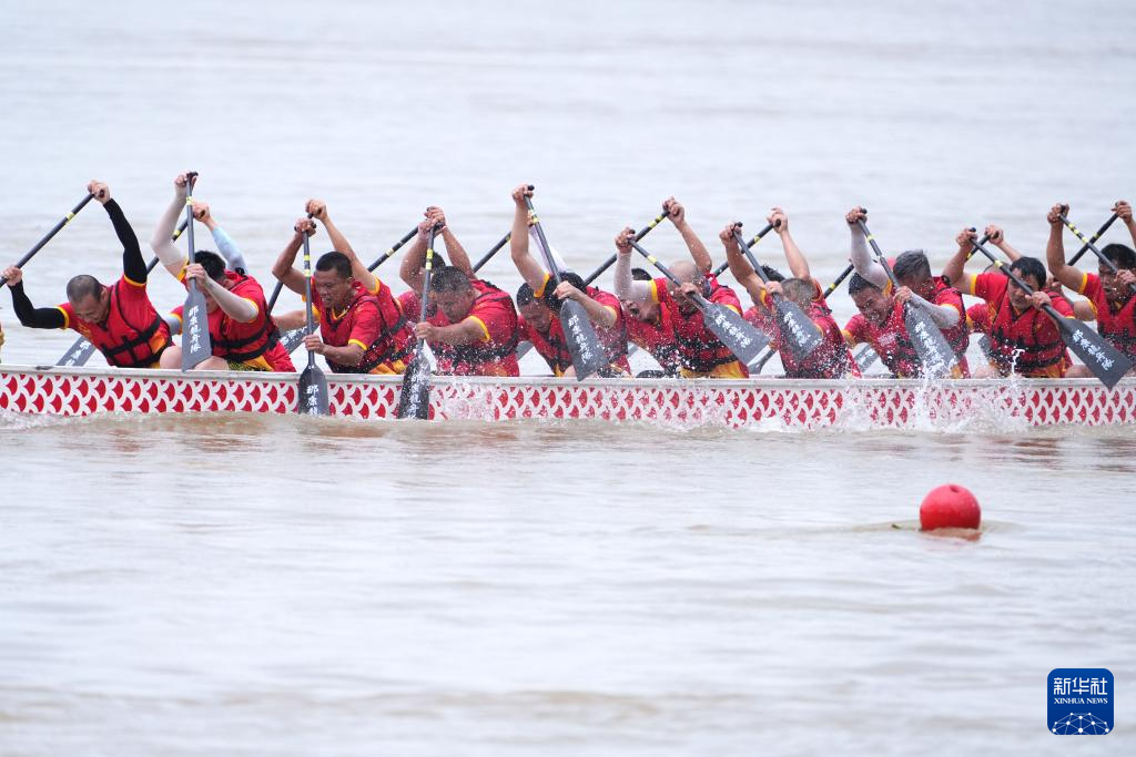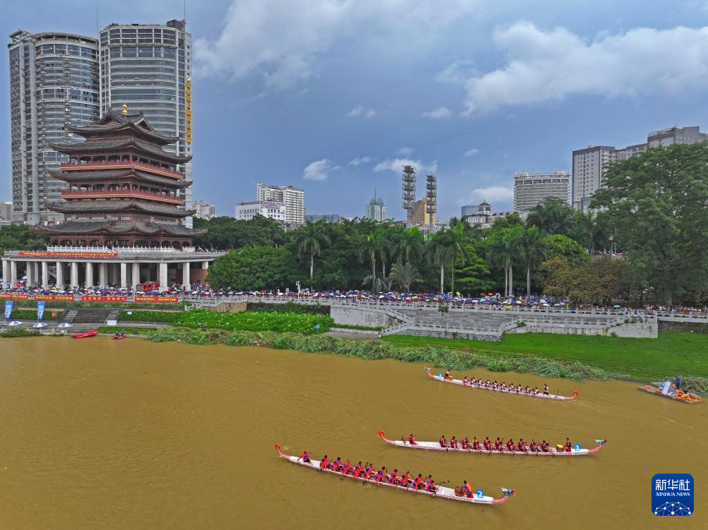 当日,2024年全国龙舟大联动暨南宁龙舟公开赛在南宁邕江大桥畅游阁附近水域举行,吸引广西区内外的50余支队伍、1000多名运动员参赛。