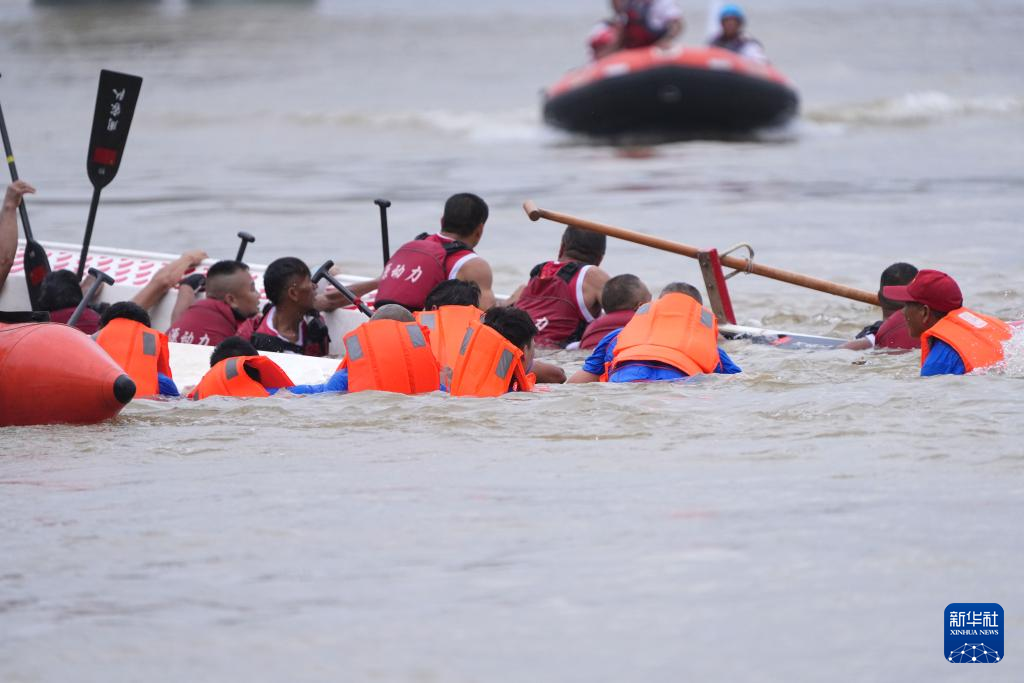 6月10日,一支参赛队伍在比赛碰撞后落水。新华社记者 周华 摄