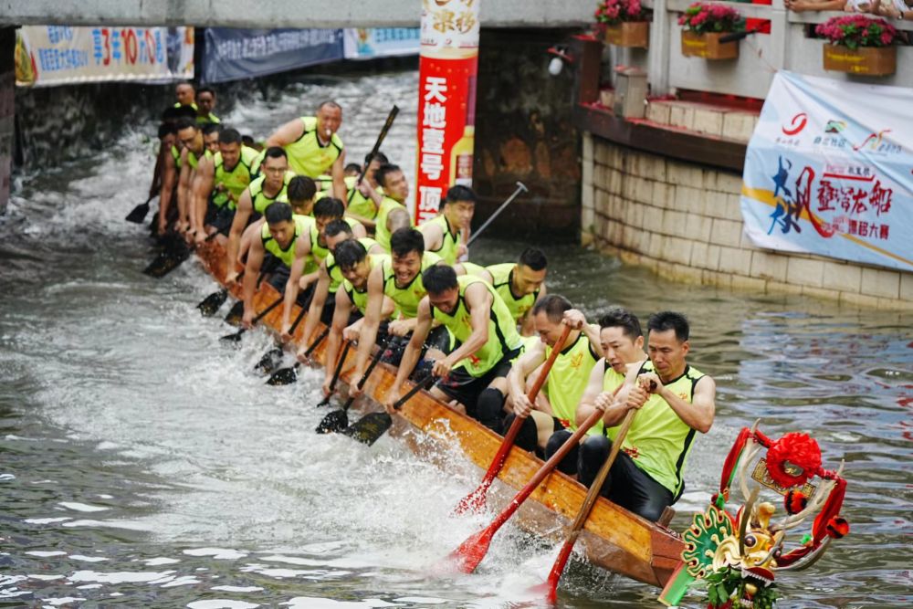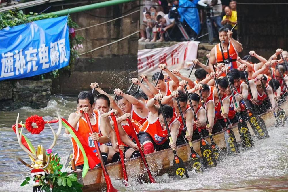 在宽度仅有3至6米的S形水道,一条长25米的龙舟满载40余人,“丝滑”地漂移过弯。虽然满头大汗,被人群挤得喘不过气,但观者无不大呼过瘾。