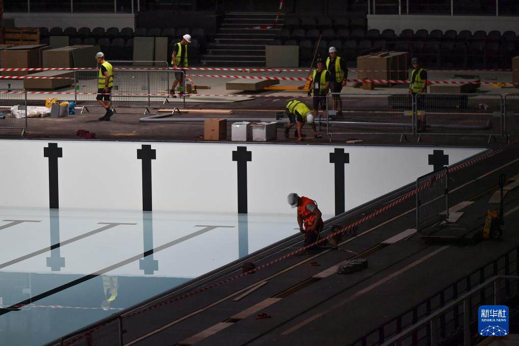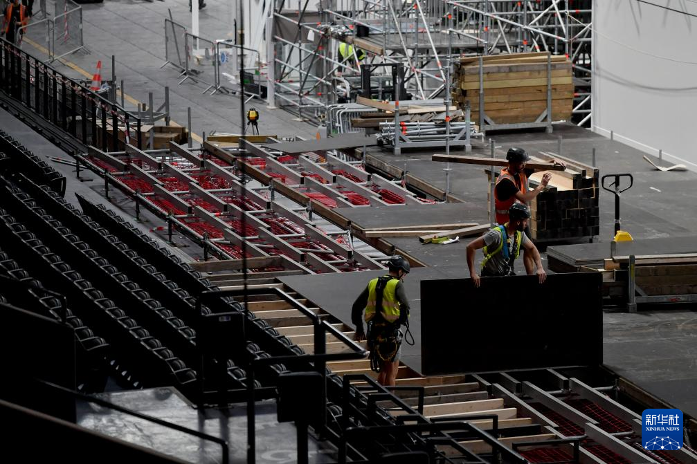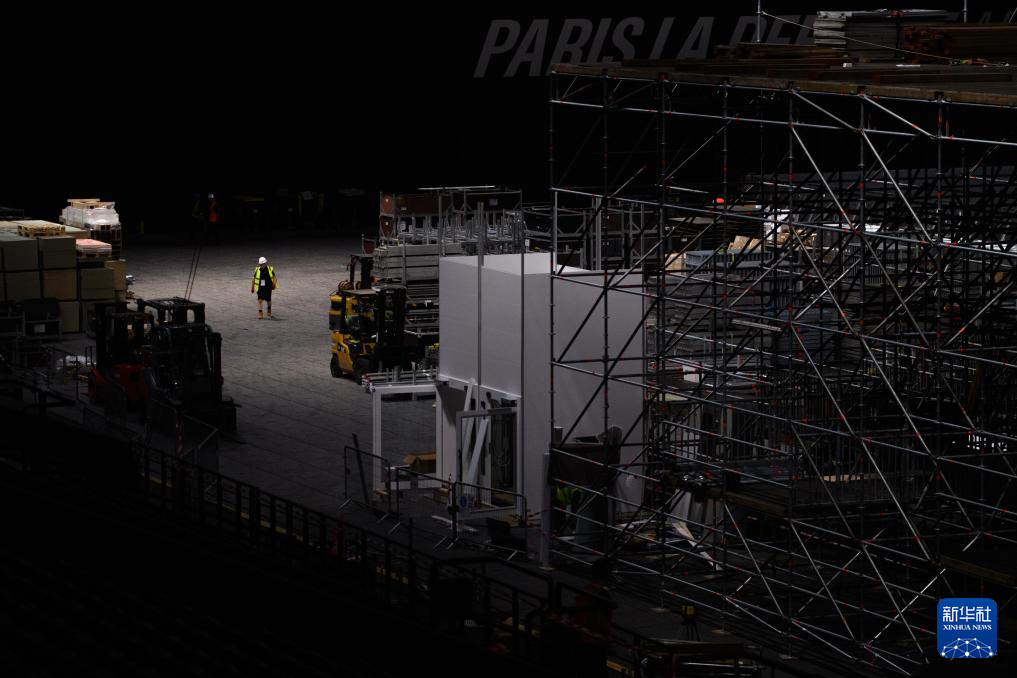 6月12日,工作人员在拉德芳斯体育馆内工作。新华社发(朱利安·马蒂亚摄)