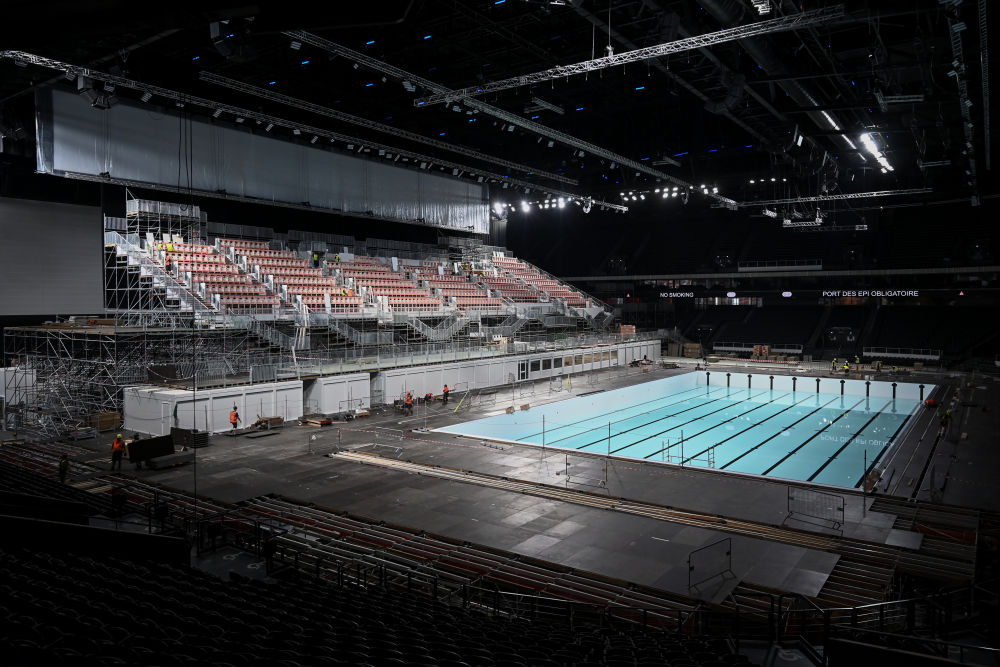 巴黎奥组委为了本届奥运会新修建的水上运动中心,位于法兰西体育场的附近,这也是原定的游泳比赛举办地。但由于预算超支和交通不便等原因,组委会最终放弃了在水上运动中心举办游泳比赛的计划,转而选择了位于楠泰尔市的拉德芳斯体育馆,而原计划在这座场馆举行的体操比赛则被移至贝西体育馆举行。