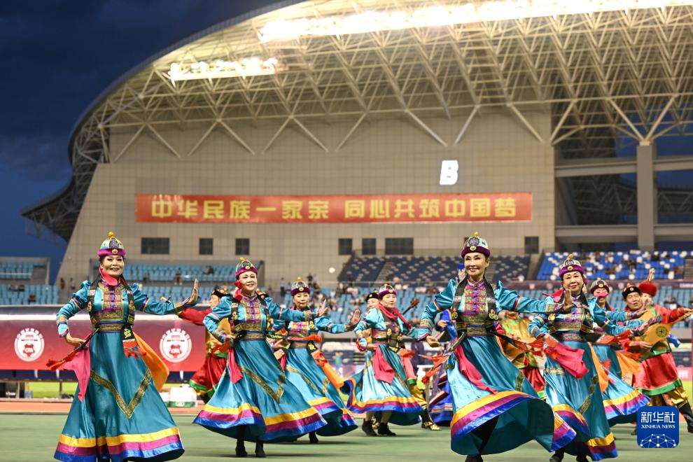 6月13日,演员在中场休息期间表演。新华社记者 贝赫 摄