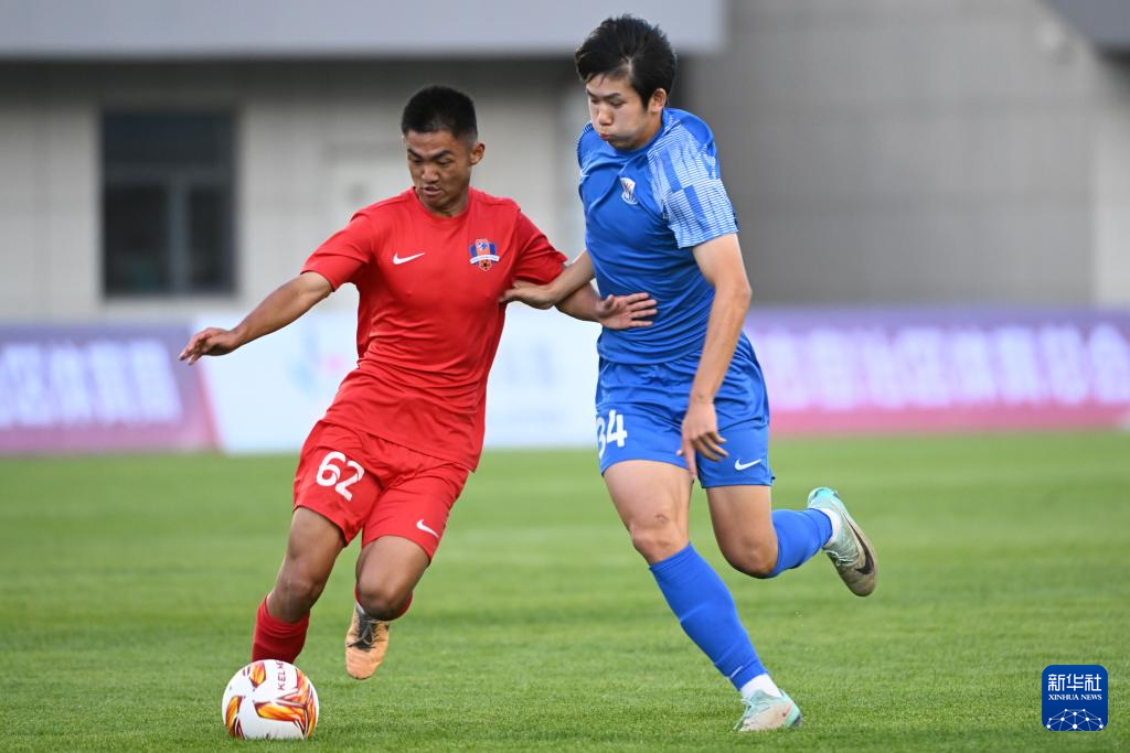 6月13日,梅州客家U21队球员魏文杰(右)在比赛中进攻。新华社记者 贝赫 摄