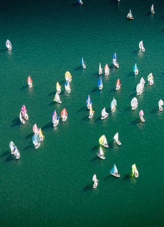 但也许这就是日内瓦湖帆船比赛的魅力。大多数人开着自己的帆船,就如同往常一样航行在湖上,不同的是今天的日内瓦湖湖面色彩斑斓,几百只帆船一起将湖面装点得如同夏日的花圃。参赛帆船既是选手,也是位置最佳的观众。他们观看面前的千帆滑过,遥望远处的青山,寻找湖边的各种建筑古迹。这才是他们参赛的最大收获。