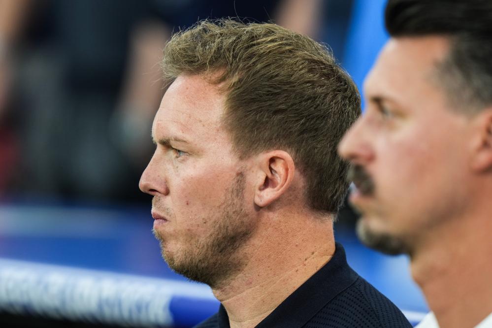 6月14日,德国队主教练纳格尔斯曼(左)在比赛前。新华社记者 彭子洋 摄