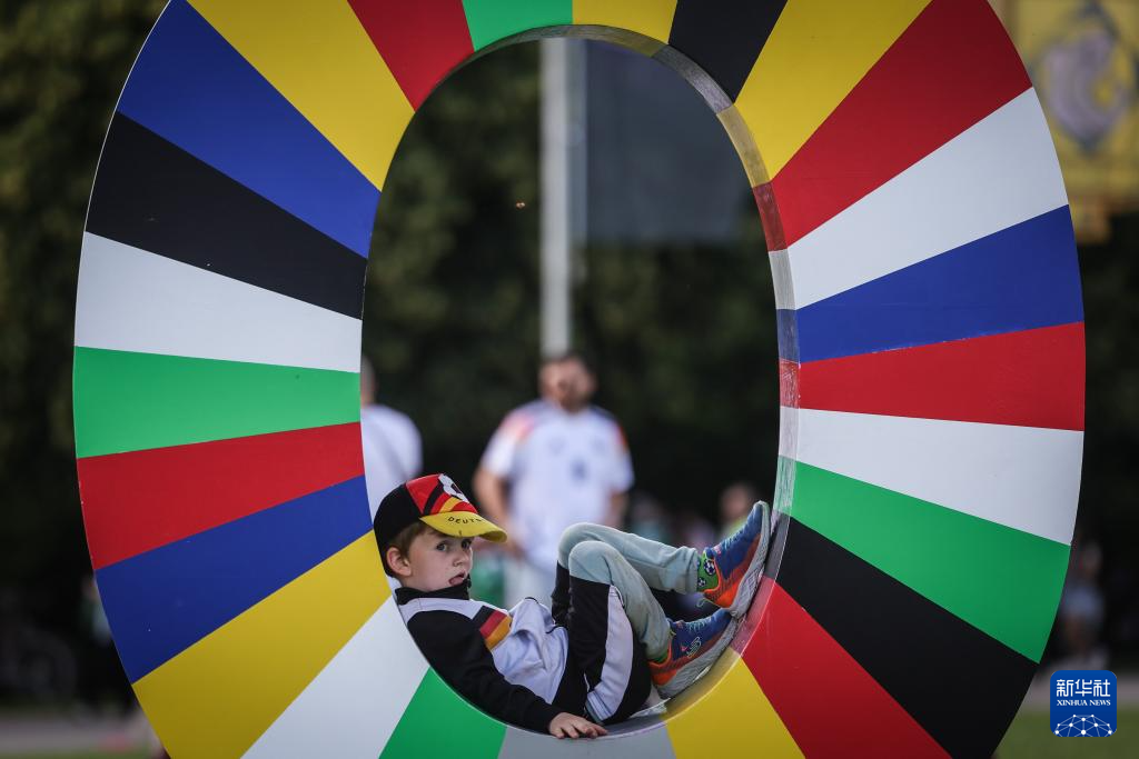 这是6月14日在慕尼黑奥林匹克公园球迷广场拍摄的一位小球迷。新华社记者 潘昱龙 摄