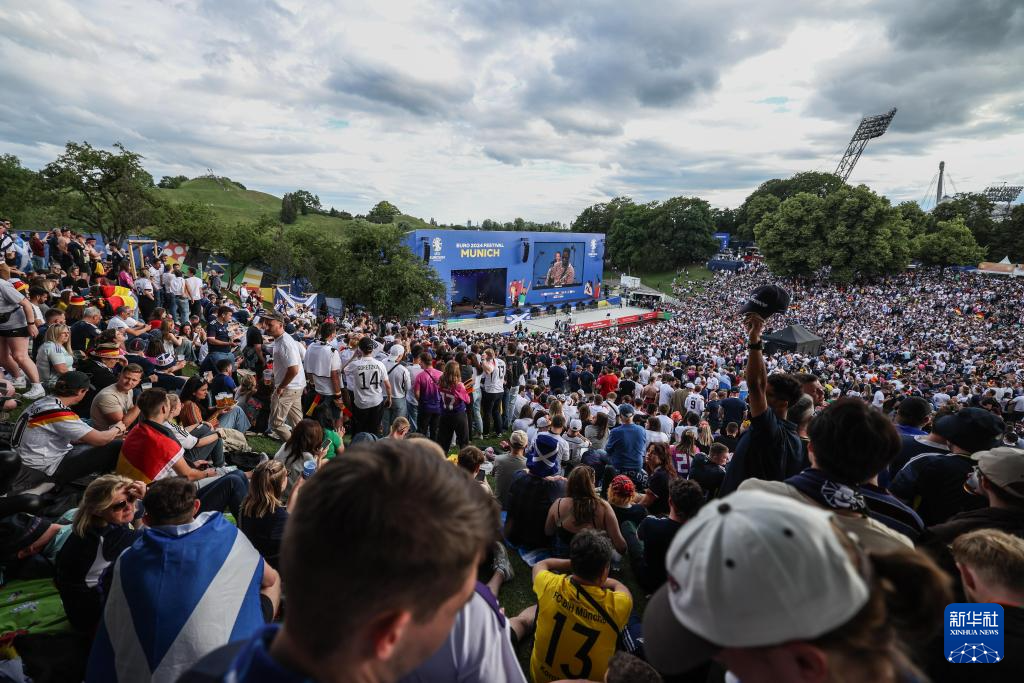 6月14日,球迷在慕尼黑奥林匹克公园球迷广场等待比赛开始。新华社记者 彭子洋 摄