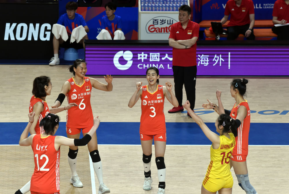 6月15日,中国队球员在比赛中庆祝得分。新华社记者 卢炳辉 摄