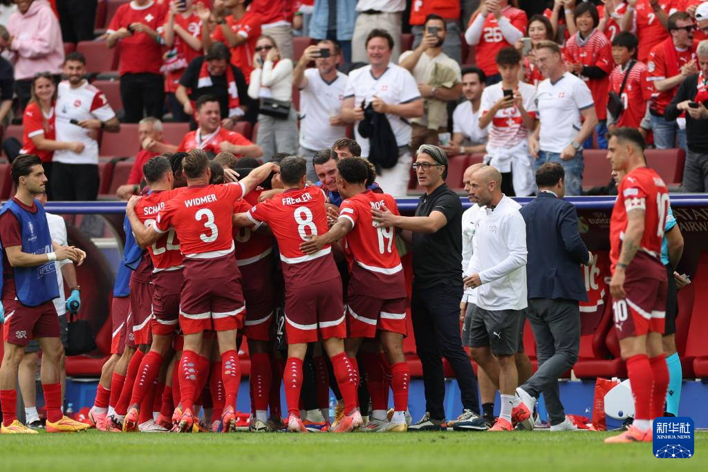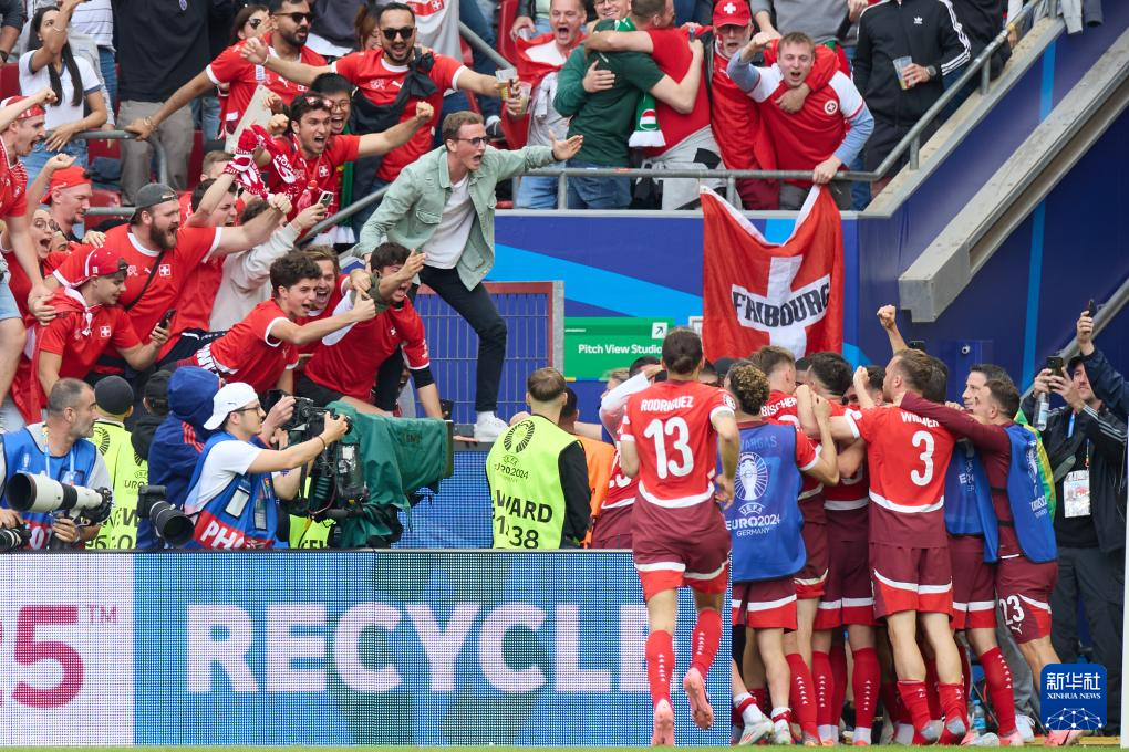 6月15日,瑞士队球员庆祝进球。新华社记者 孟鼎博 摄