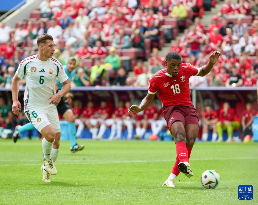 当日,在德国科隆进行的2024年欧洲足球锦标赛小组赛A组首轮比赛中,瑞士队3比1战胜匈牙利队。