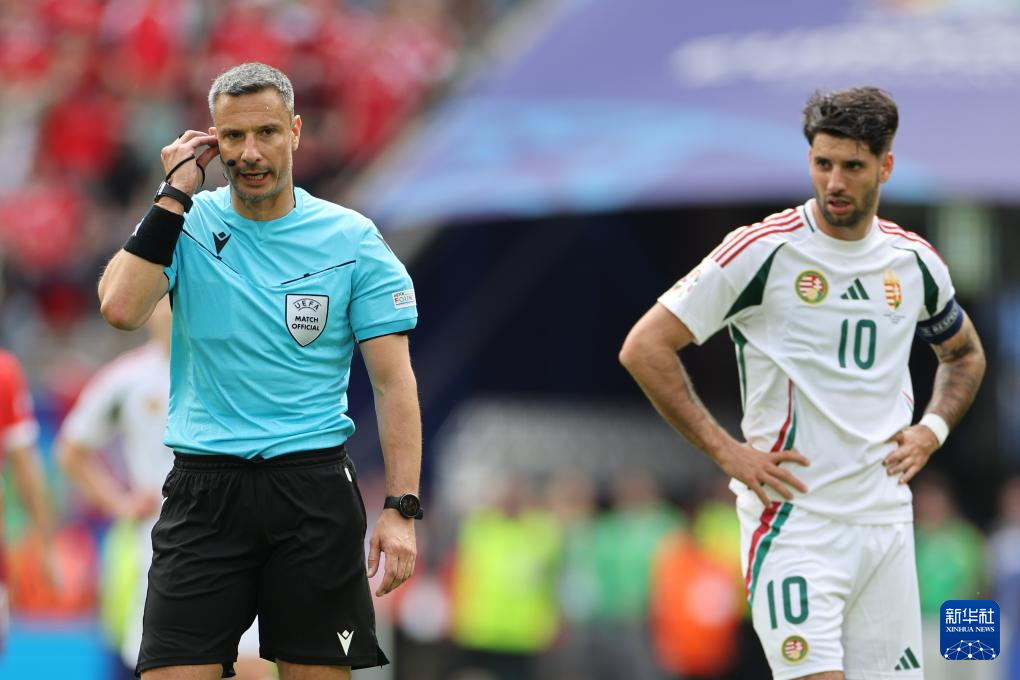 6月15日,主裁判温契奇(左)在比赛中。新华社记者 孟鼎博 摄