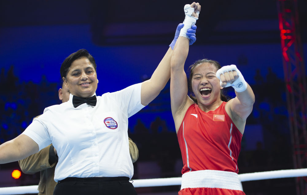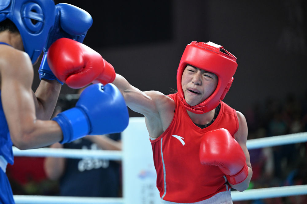 2023年3月25日,在印度新德里举行的2023年世界女子拳击锦标赛精英女子50-52公斤级决赛中,吴愉战胜意大利选手希里内,夺得冠军。新华社发(贾韦德·达尔摄)