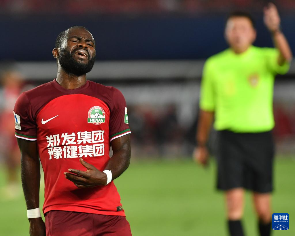 6月15日,河南俱乐部酒祖杜康队球员阿奇姆彭在比赛中错失良机。新华社记者 李嘉南 摄