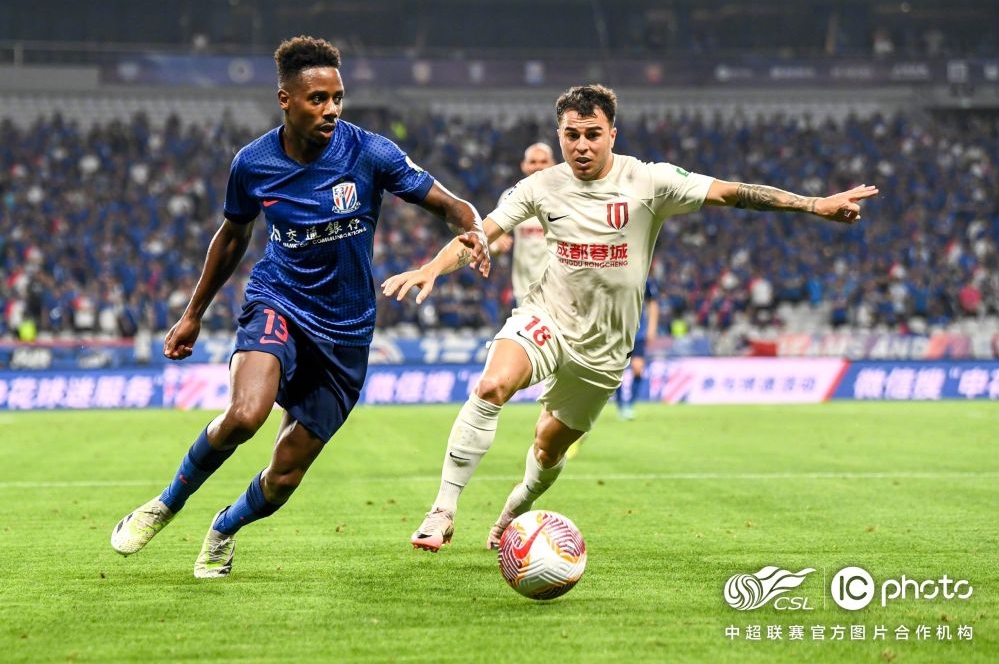 上海申花与成都蓉城的比赛第4分钟,成都蓉城角球罚到门前,皮球碰到蒋圣龙的脚后折射入网,成都蓉城1:0取得领先。第16分钟,于汉超后场长传,马莱莱插上后将皮球打进球门远角,将比分改写为1:1平。第74分钟,成都蓉城的罗慕洛被阿马杜绊倒,主裁判查看录像回放后判罚点球,费利佩主罚,申花门将鲍亚雄将球没收,最终两队1:1握手言和。