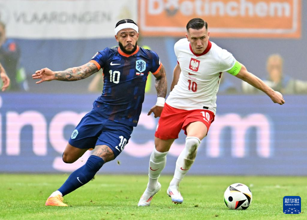 当日,在德国汉堡进行的2024年欧洲足球锦标赛小组赛D组首轮比赛中,荷兰队2比1战胜波兰队。