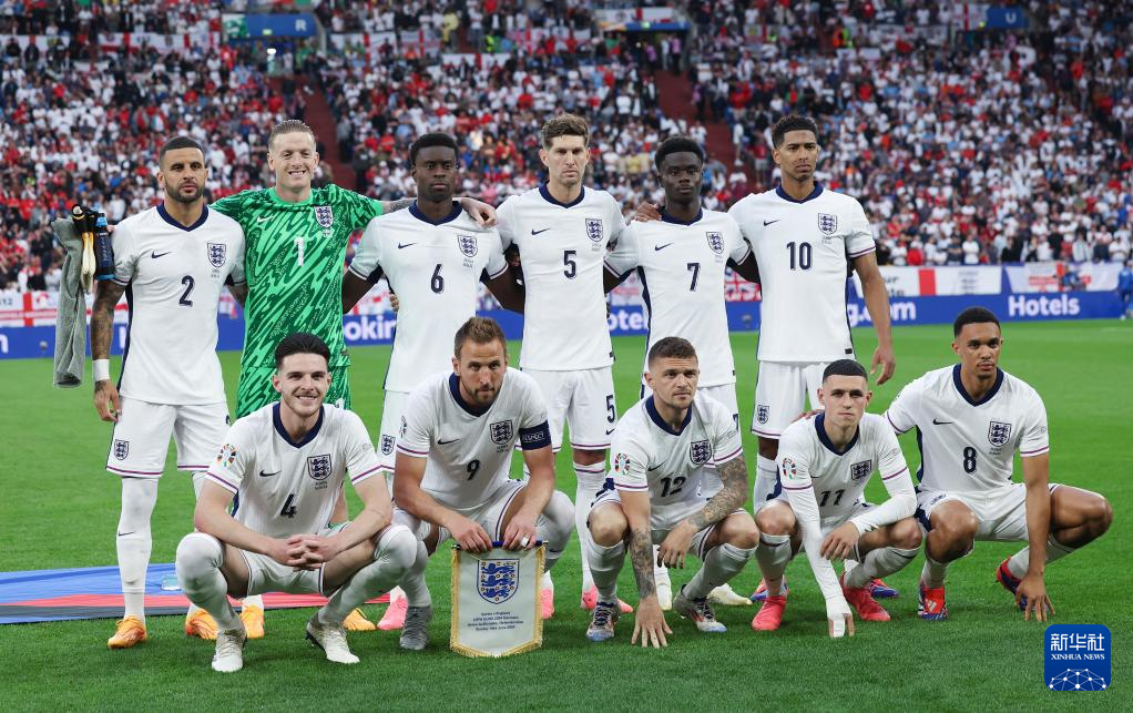 6月16日,英格兰队首发球员在比赛前合影。新华社记者 白雪飞 摄