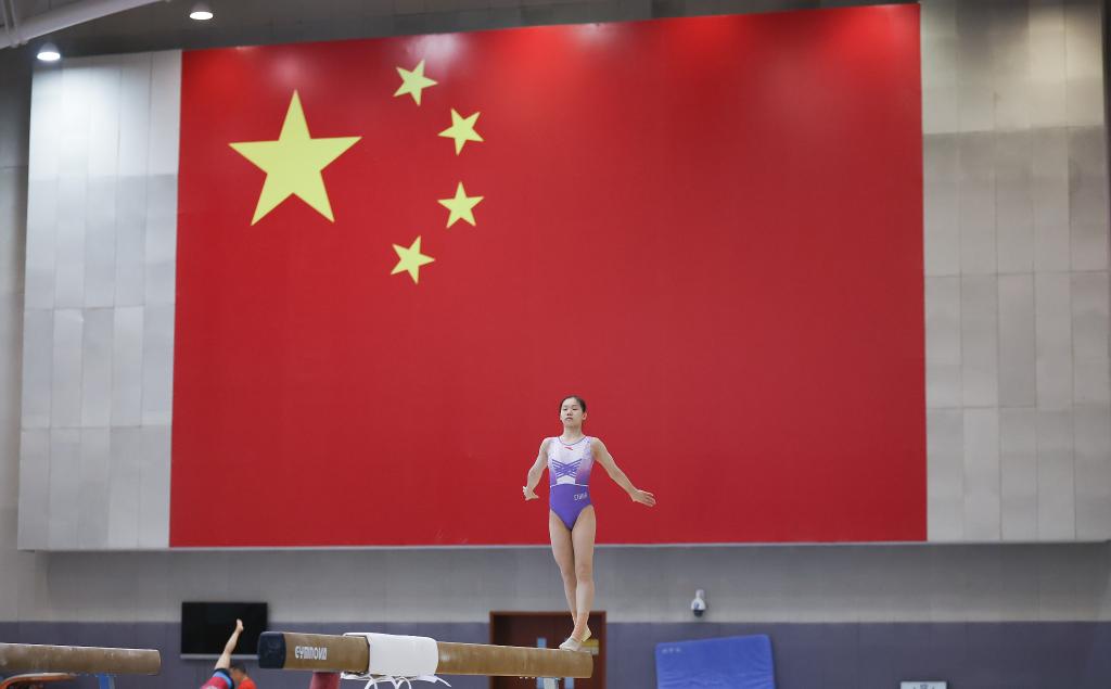 5月8日,中国体操队队员欧钰珊在训练中。新华社记者 曹灿 摄