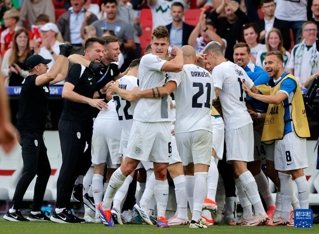 6月16日,斯洛文尼亚队球员庆祝进球。新华社发(菲利普·鲁伊兹摄)