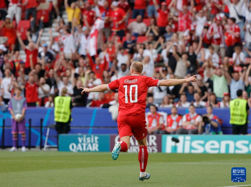 6月16日,丹麦队球员埃里克森进球后庆祝。新华社发(菲利普·鲁伊兹摄)