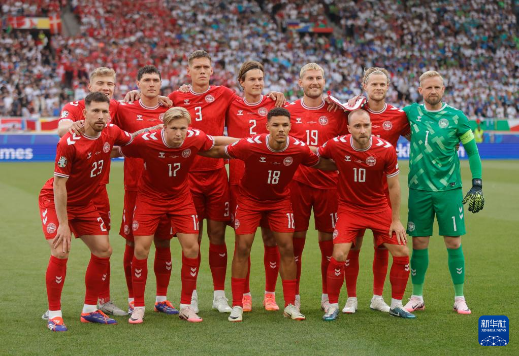 6月16日,丹麦队首发球员在赛前合影。新华社发(菲利普·鲁伊兹摄)