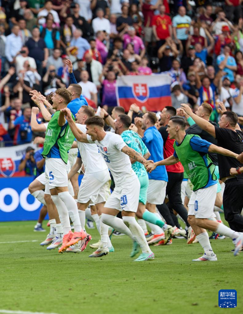 6月17日,斯洛伐克队球员在比赛后庆祝胜利。新华社记者 孟鼎博 摄