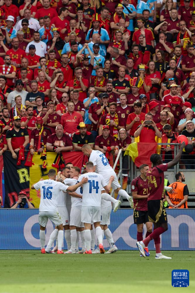 当日,在德国法兰克福进行的2024欧洲足球锦标赛E组首轮比赛中,比利时队0比1不敌斯洛伐克队。