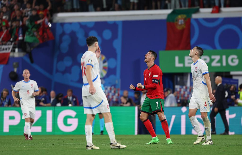 葡萄牙队排出352阵型,C罗与米兰当家球星莱奥搭档锋线,布鲁诺·费尔南德斯、贝尔纳多·席尔瓦等一众攻击手排列身后伺机而动。第八分钟,莱奥边路衔枚疾走,起球传入禁区,C罗展现出惊人的核心力量,头球攻门稍稍偏出。第32分钟,C罗觅得单刀良机,但射门被门将神勇化解,此后不久他又灵光乍现送出脚后跟妙传,可惜队友的打门也被破坏。上半场葡萄牙队呈压制进攻态势,捷克队防守端疲于应付,但葡萄牙队得势不得分,半场结束时双方均无建树。