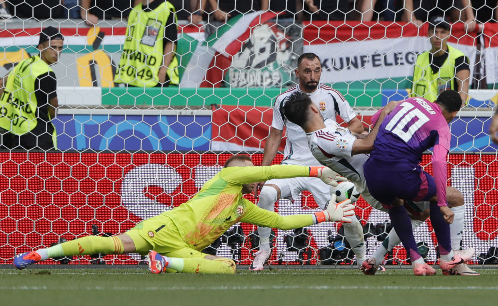 A组首轮比赛中,德国队5:1大胜苏格兰队,匈牙利队则是1:3不敌瑞士队。本场比赛德国队牢牢控制着比赛局面。第22分钟,京多安在禁区乱战对抗后获得球权,然后将球回做给穆夏拉,后者抽射破门,打进个人本届欧锦赛第二球。