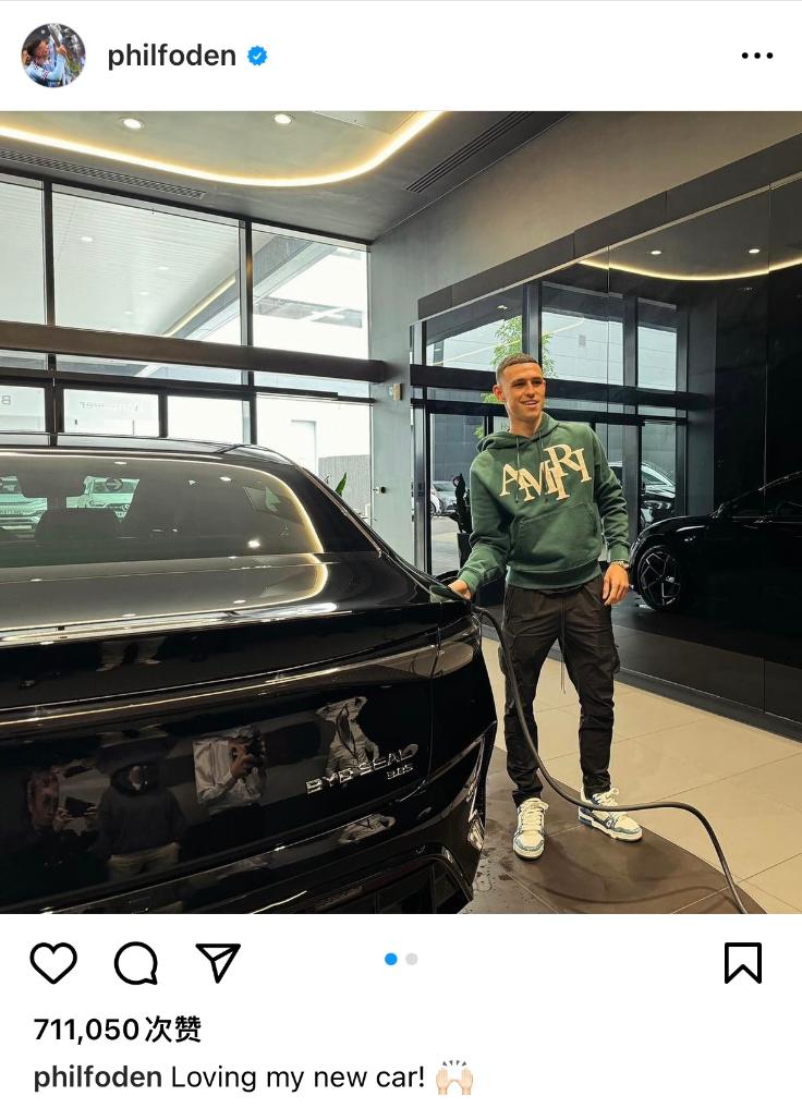 福登其实不是第一位开“海豹”的英格兰队员。上个月,他的队友沃克也曾晒照喜提新车。