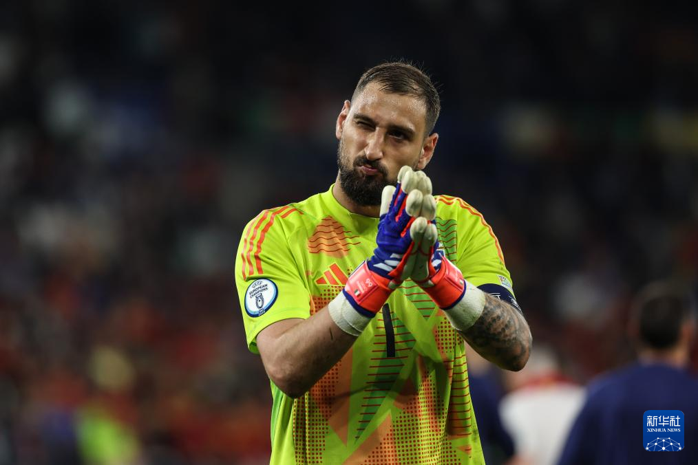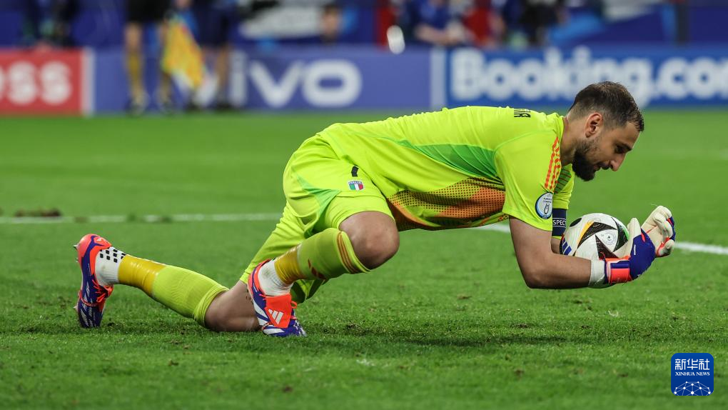 6月20日,意大利队守门员唐纳鲁马在比赛中扑救。新华社记者 潘昱龙 摄