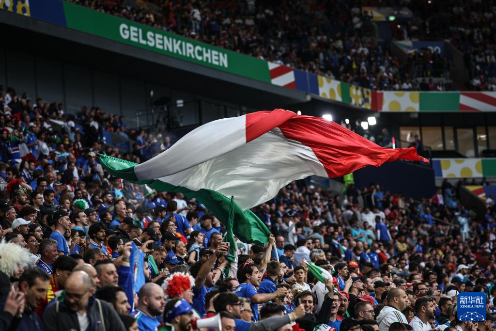 6月20日,意大利队球迷为球队加油助威。新华社记者 潘昱龙 摄