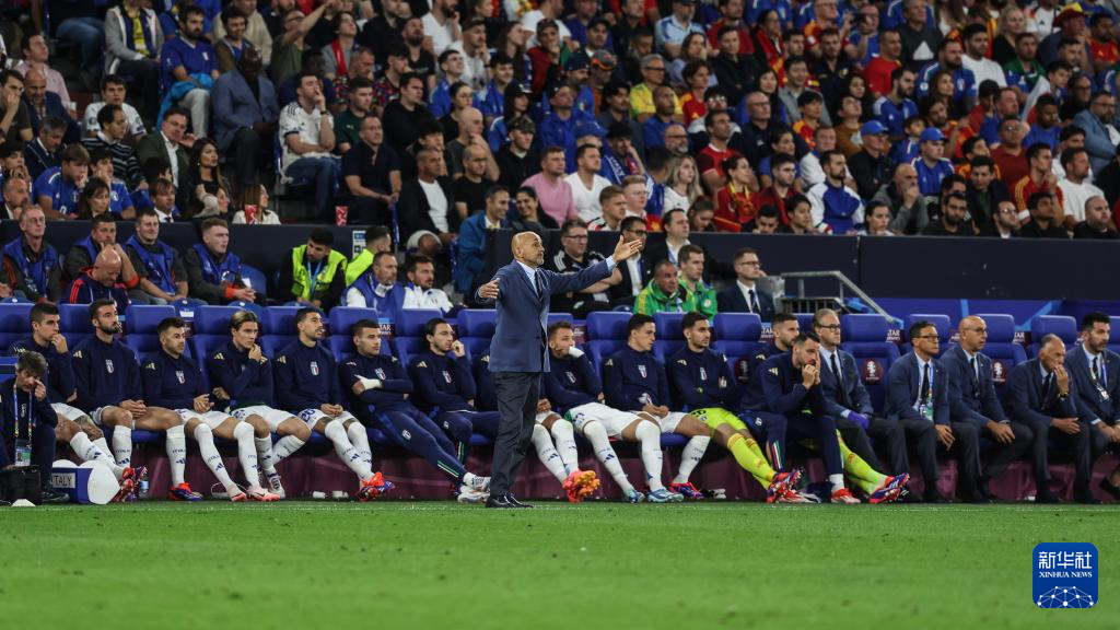 6月20日,意大利队主教练卢恰诺·斯帕莱蒂在场边指挥比赛。新华社记者 潘昱龙 摄