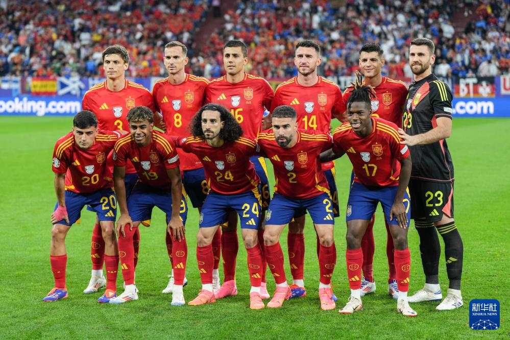 6月20日,西班牙队首发球员在赛前合影。新华社记者 彭子洋 摄