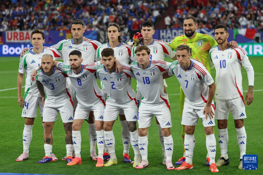 6月20日,意大利队首发球员在赛前合影。新华社记者 潘昱龙 摄