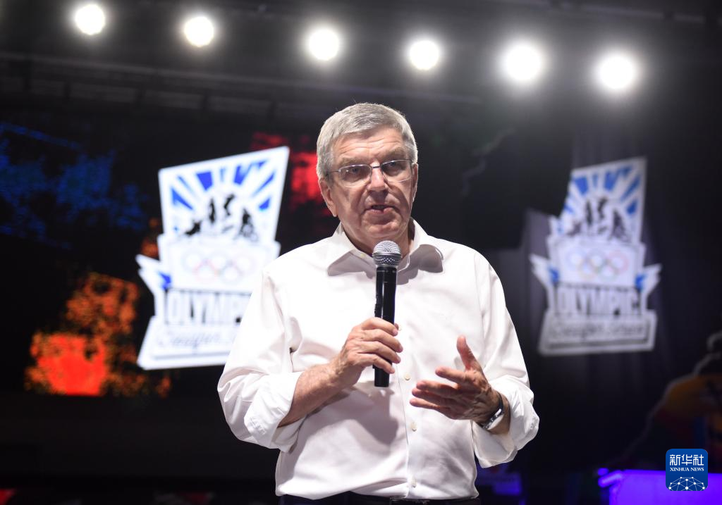 6月20日,国际奥委会主席巴赫回答记者提问。新华社记者 贺灿铃 摄
