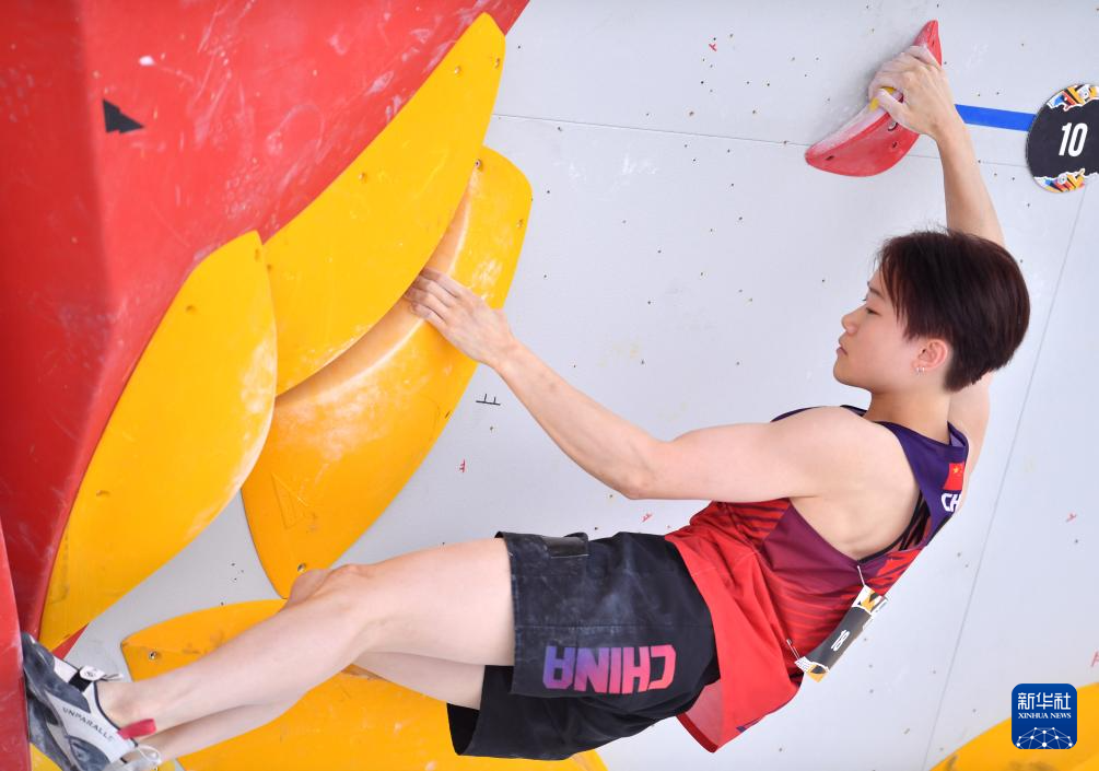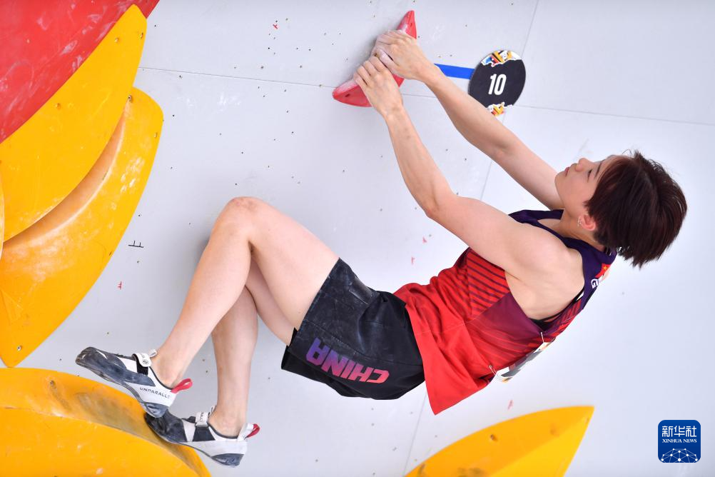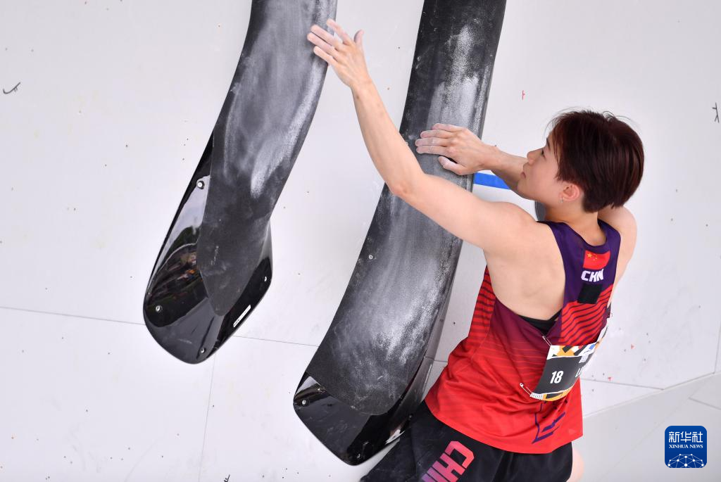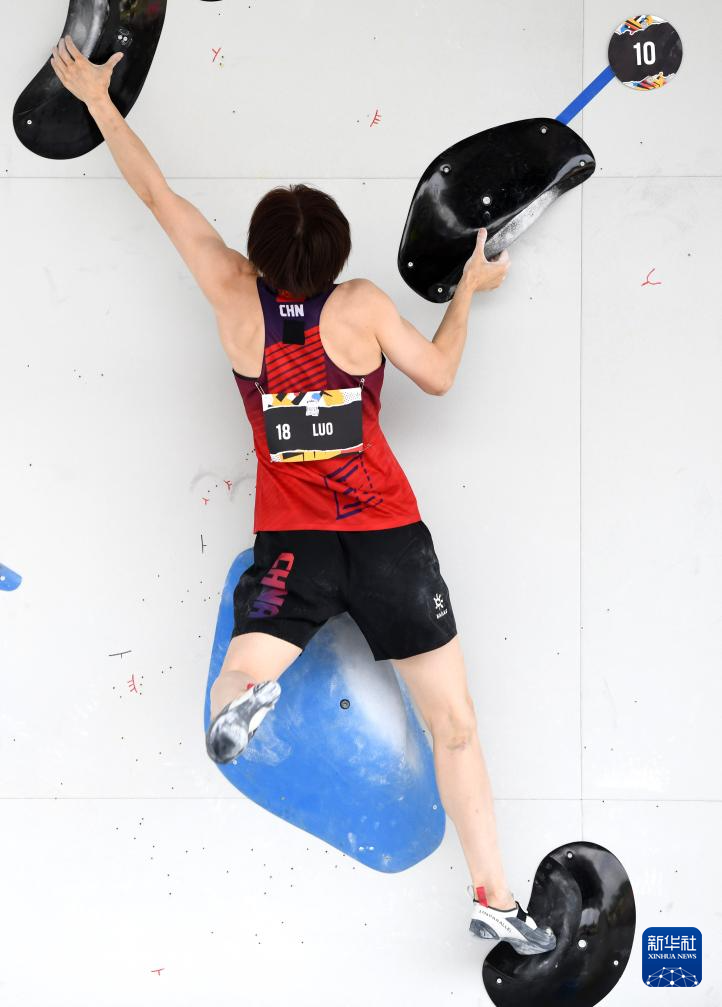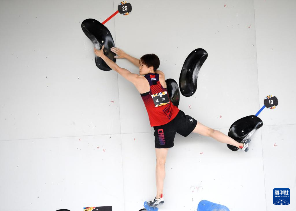6月20日,中国选手骆知鹭在比赛中。她在攀石预赛中的成绩为99.1分。新华社记者 连漪 摄