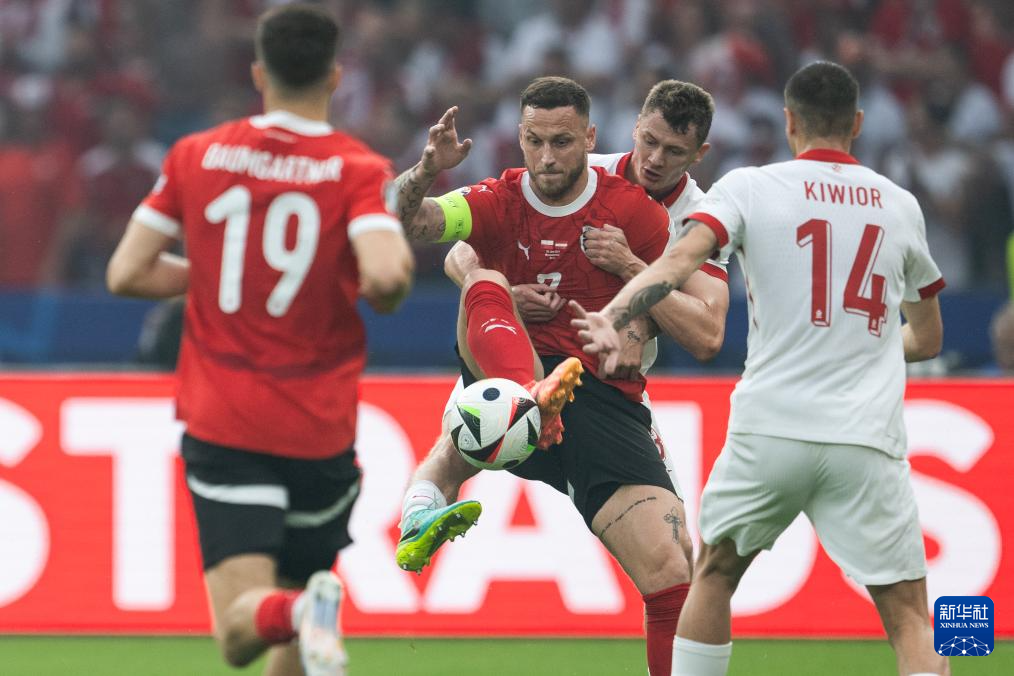 当日,在德国柏林进行的2024年欧洲足球锦标赛小组赛D组第二轮比赛中,奥地利队3比1战胜波兰队。