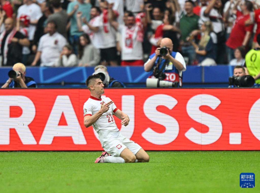 6月21日,波兰队球员皮亚特克在进球后庆祝。新华社记者 任鹏飞 摄