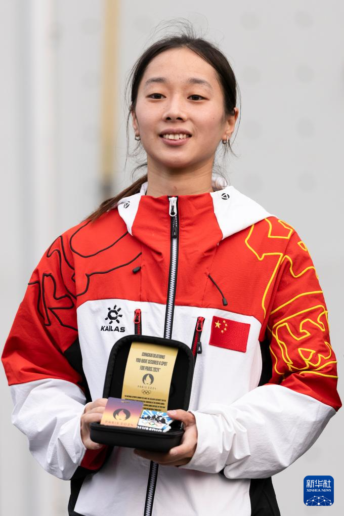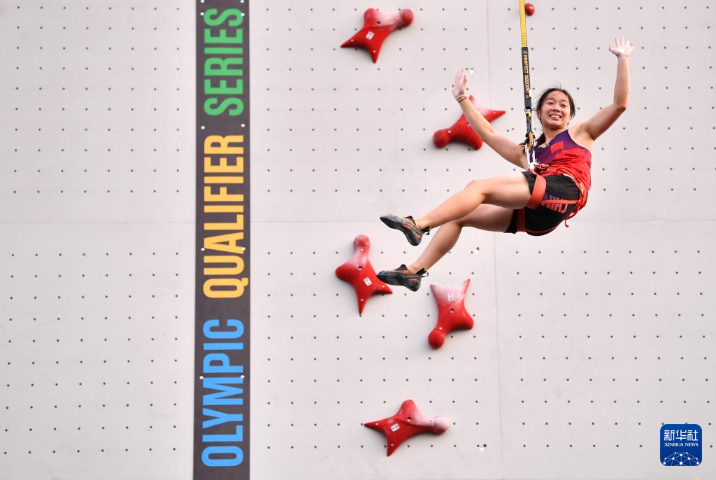 6月22日,周娅菲在获得攀岩速度赛巴黎奥运会参赛资格后留影。新华社发(弗尔季·奥蒂洛摄)