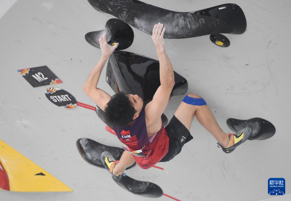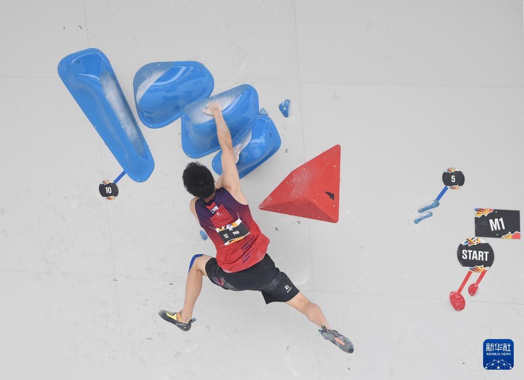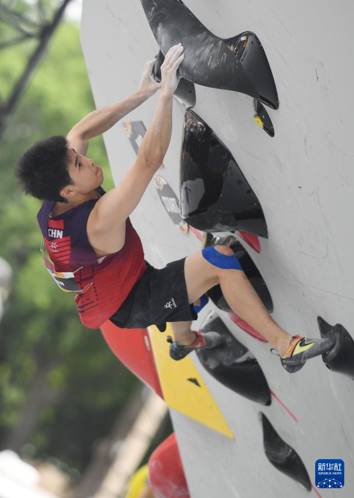 6月22日,中国选手潘愚非在攀石赛中。新华社记者 贺灿铃 摄