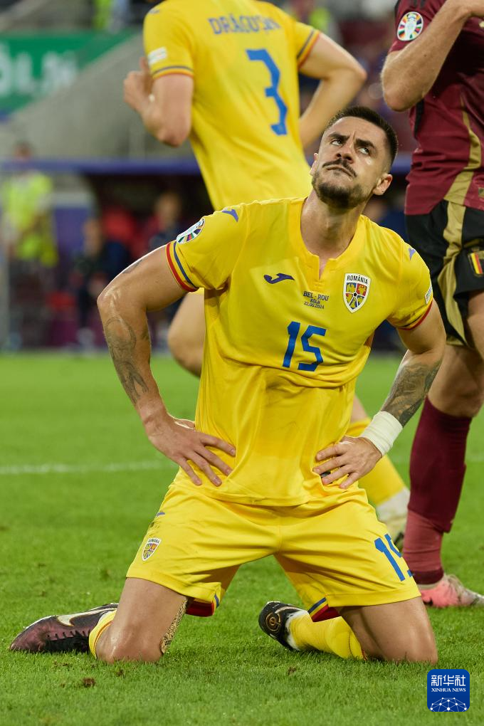 6月22日,罗马尼亚队球员德勒古欣在球队丢球后。新华社记者 孟鼎博 摄