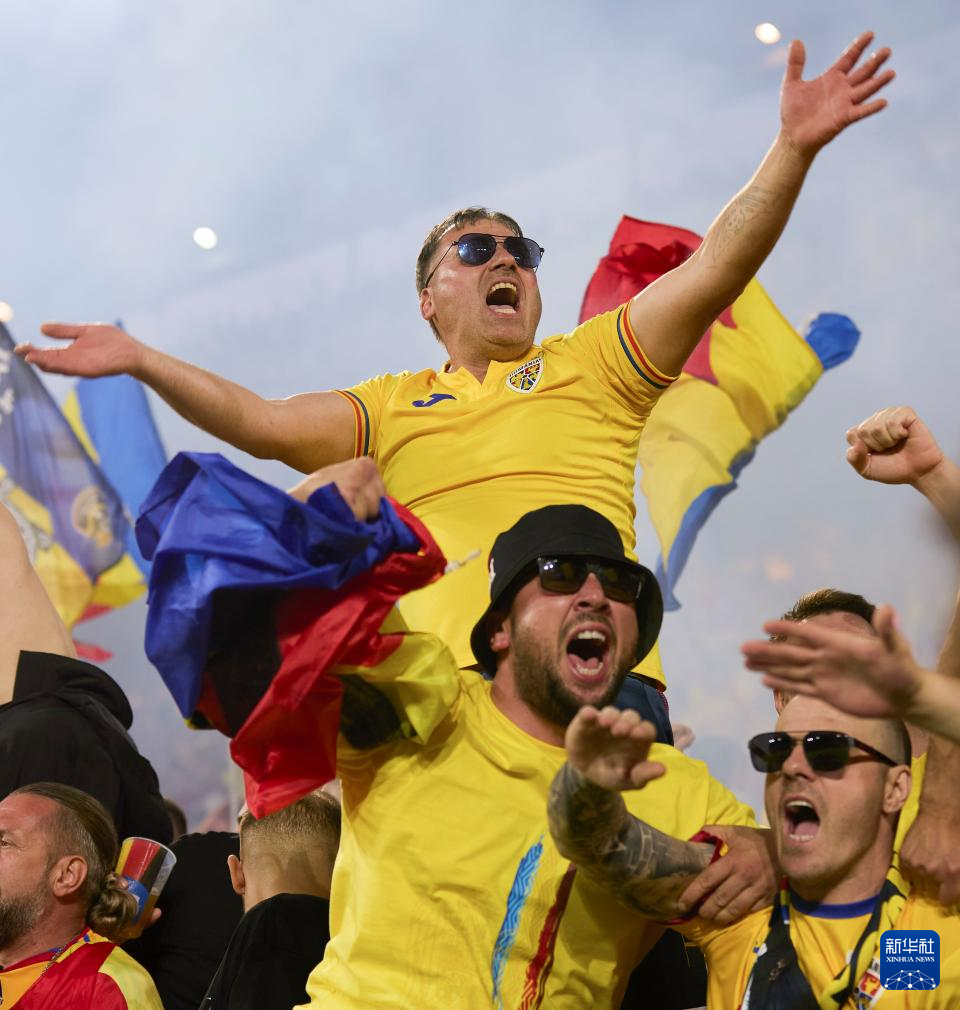 6月22日,罗马尼亚队球迷为球队加油助威。新华社记者 孟鼎博 摄