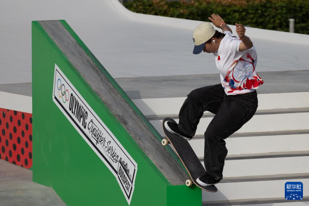 当日,巴黎奥运会资格系列赛布达佩斯站滑板女子街式半决赛在匈牙利布达佩斯举行。