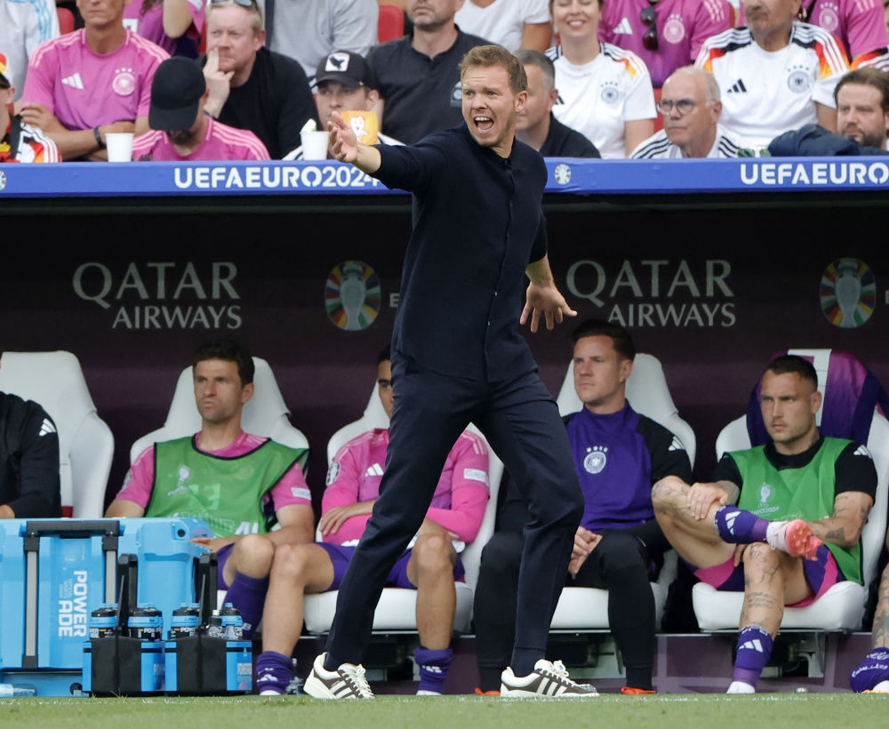 6月19日,德国队主教练纳格尔斯曼(前)在场边指挥。新华社发(菲利普·鲁伊兹摄)