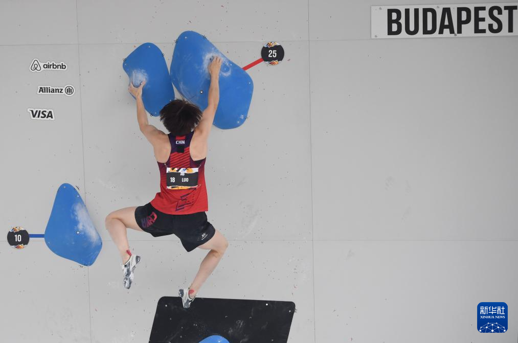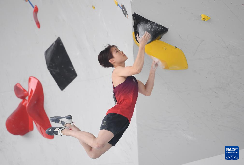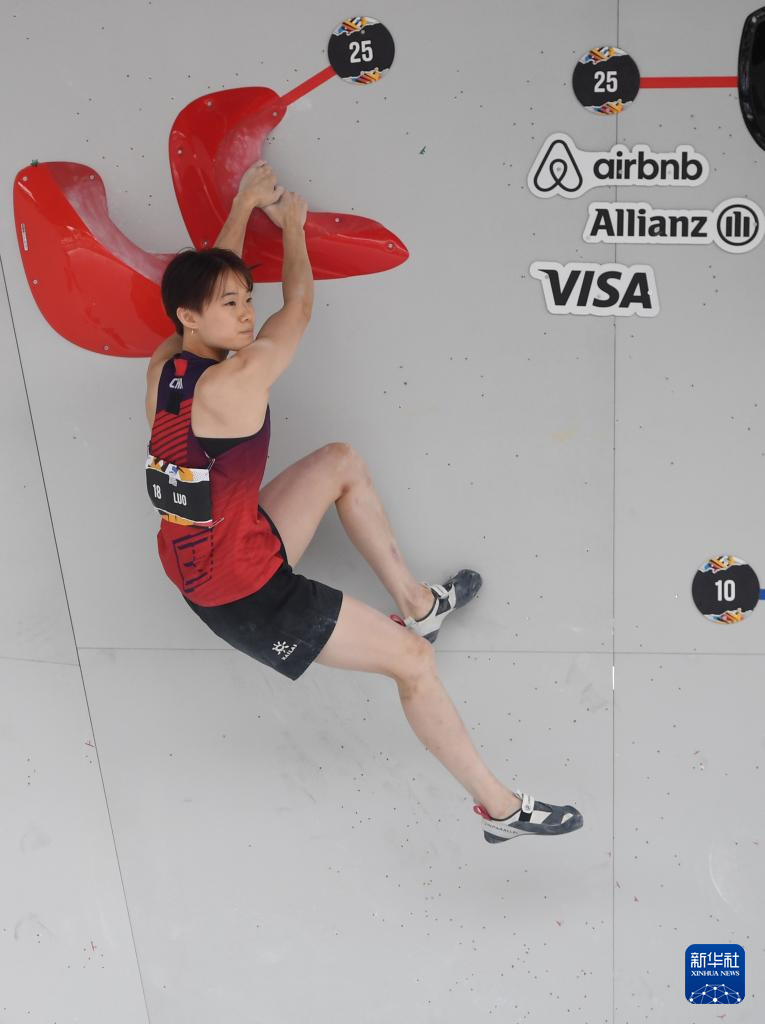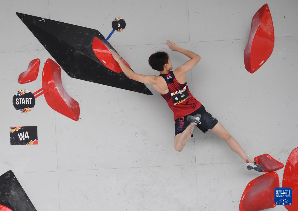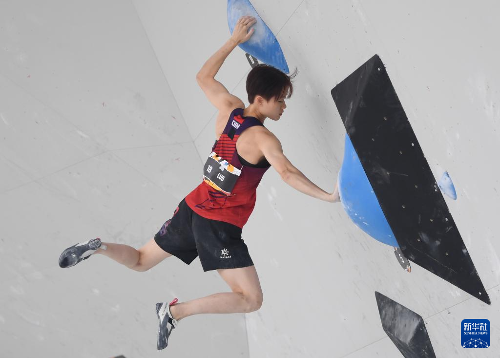 6月23日,中国选手骆知鹭在攀石赛中。新华社记者 贺灿铃 摄