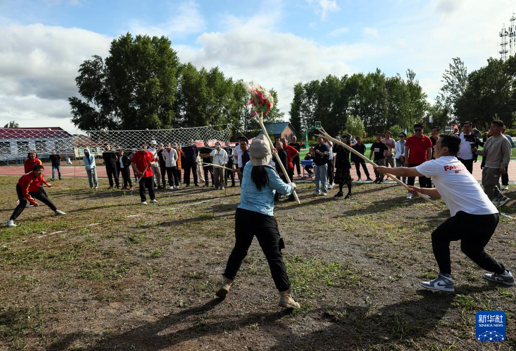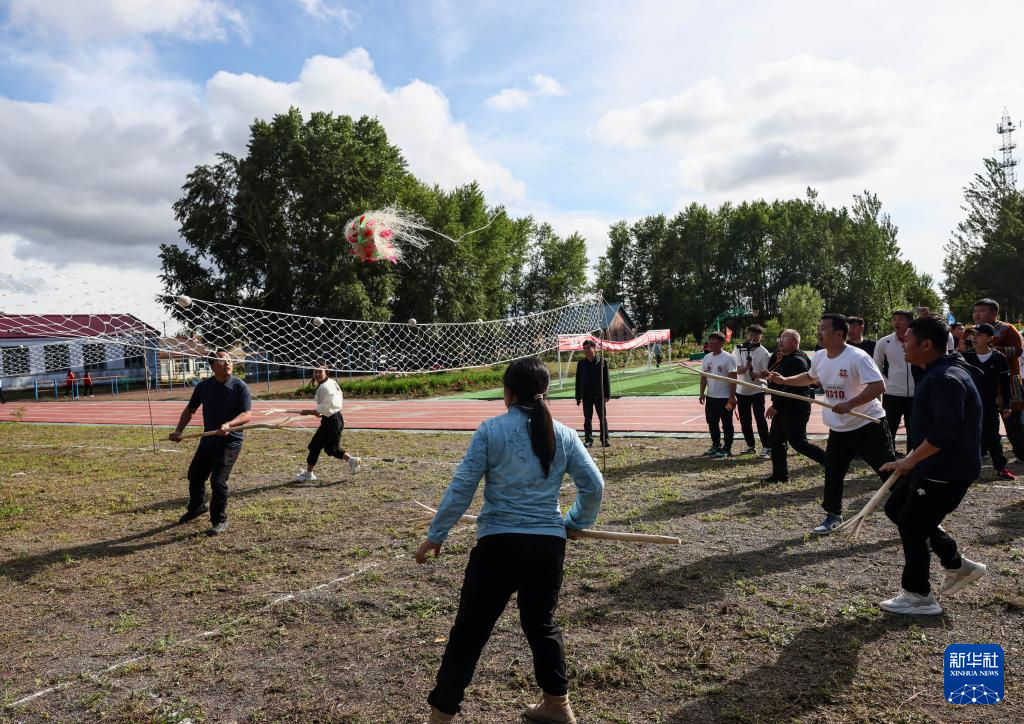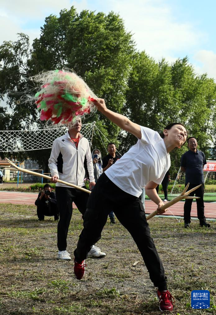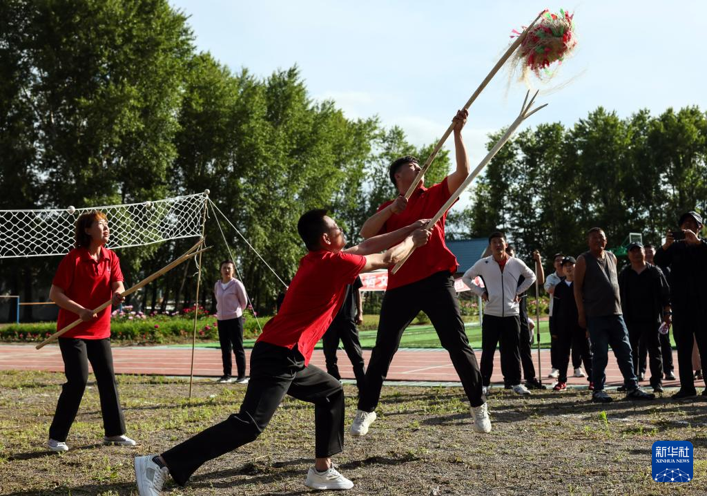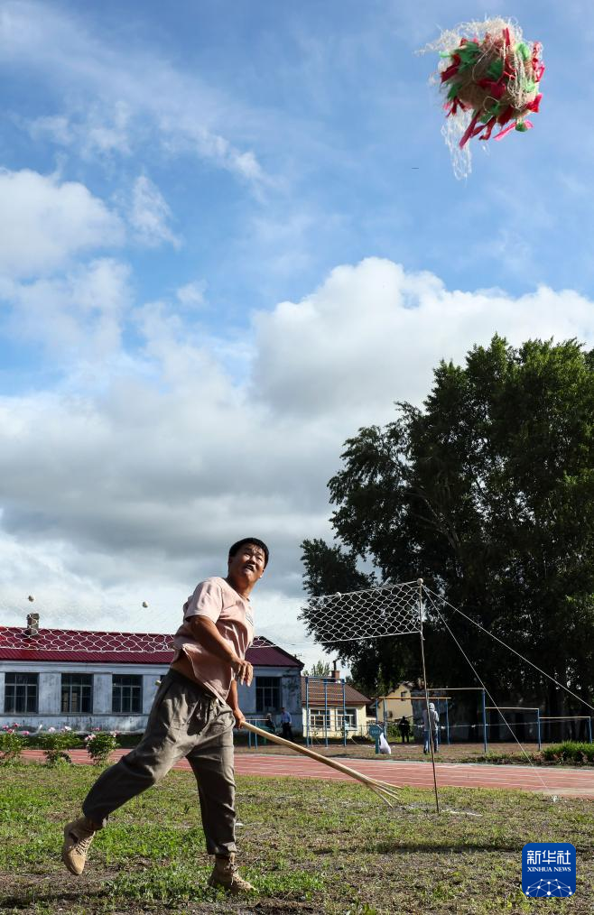 6月20日农历五月十五是赫哲族传统节日乌日贡,黑龙江同江市街津口居民举行叉草球比赛,欢度佳节。叉草球是当地赫哲族的一项传统体育活动,源于日常的渔猎生活。