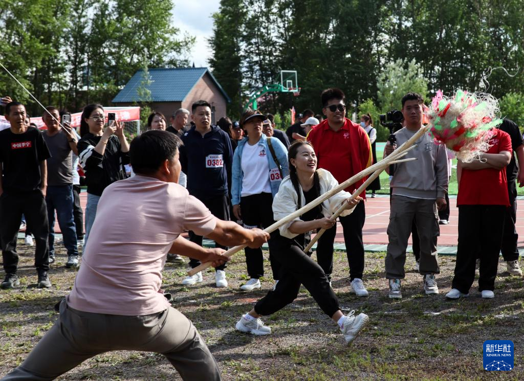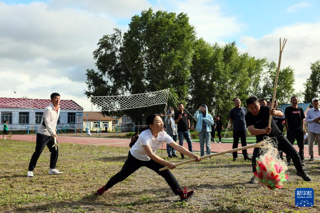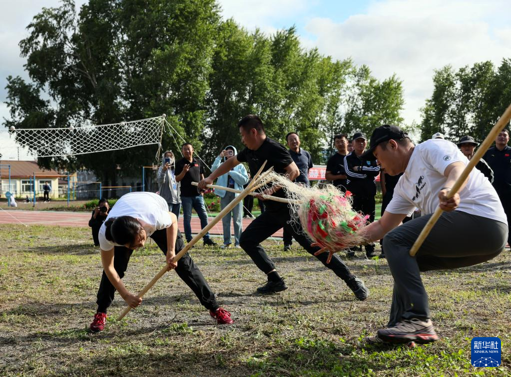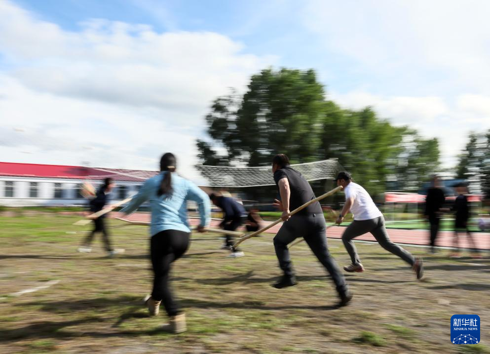 6月20日农历五月十五是赫哲族传统节日乌日贡,黑龙江同江市街津口居民举行叉草球比赛,欢度佳节。叉草球是当地赫哲族的一项传统体育活动,源于日常的渔猎生活。