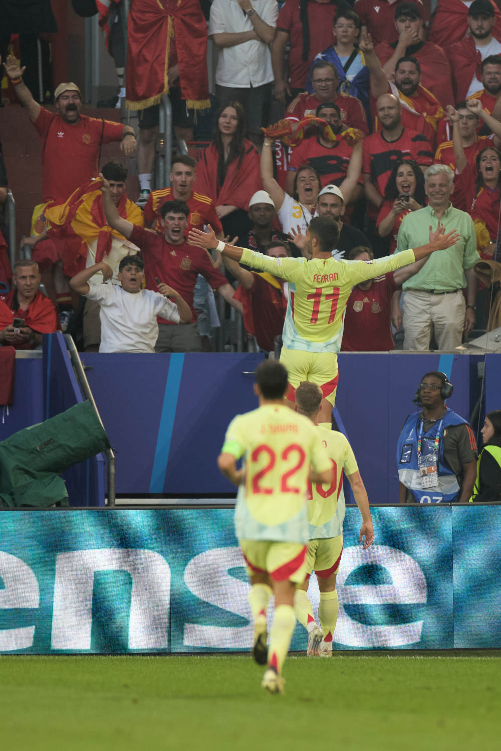 比赛刚开场13分钟,拉波尔特后场直传,奥尔莫接球后直塞禁区,费兰·托雷斯插上推射,皮球击中立柱内侧入网,西班牙队1:0领先。上半场补时阶段,阿尔巴尼亚队迎来第一次射门,阿斯拉尼禁区外起脚抽射,西班牙队门将拉亚飞身将球扑出。双方下半场均无建树。