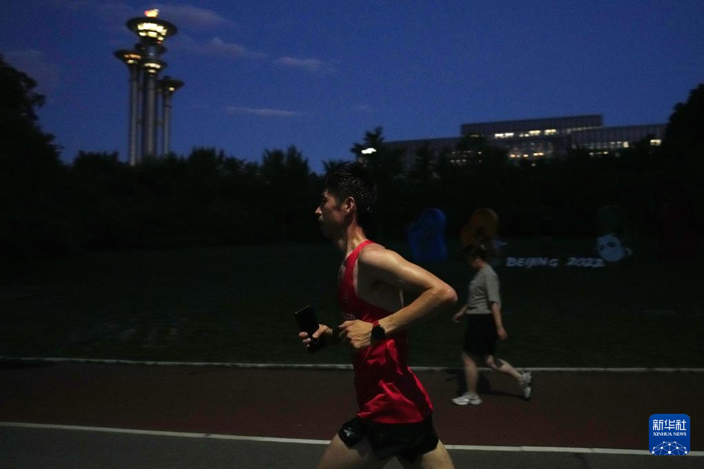 6月24日,栾玉帅在北京奥林匹克森林公园进行跑步训练。新华社记者 鞠焕宗 摄