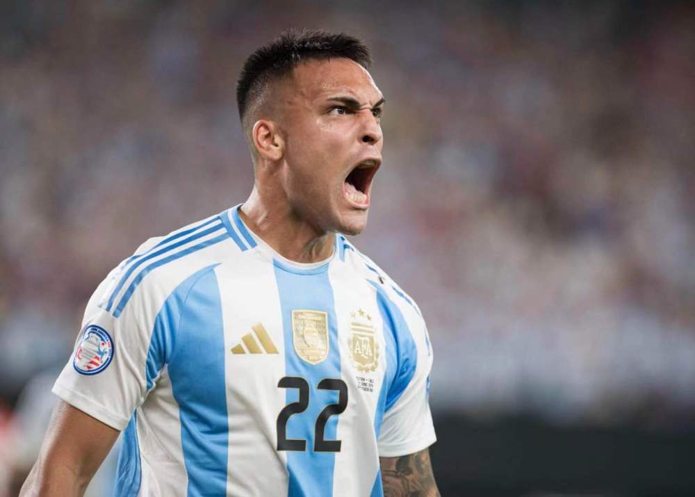 6月25日,阿根廷队球员劳塔罗·马丁内斯在比赛中。图片来自南美洲足球联合会官网